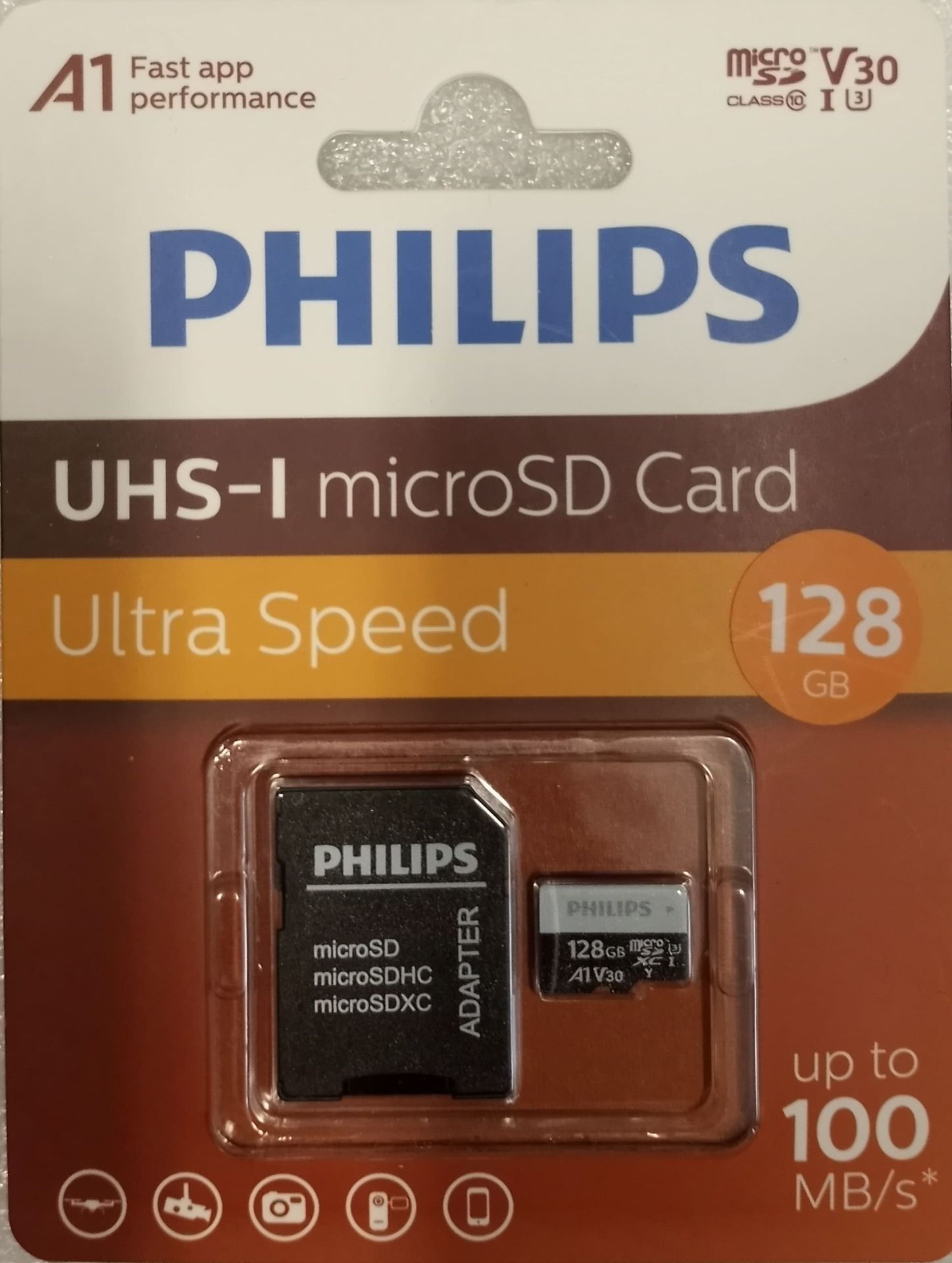 - Philips 100Mb/s Micro SD Cards 32GB, 64GB, 128GB, 266GB, 512GB UHS A1 V30 U3 Ultra Speed for Dash Camera, Drones, Phones, Go Pro Cameras, Tablets